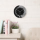 Elegant Black And Silver Damasks Silver Frame Large Clock