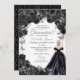 Elegant Black and Silver Floral Quinceanera Invita Invitation