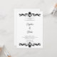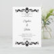 The traditional black font is easy to read and complements the black scroll work perfectly. However, the couple's names are in a modern and gorgeous script font, adding a personalised and romantic touch to the invitation.
