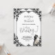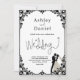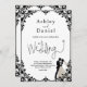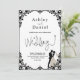 This elegant black-and-white wedding invitation is perfect for a modern wedding. The simple design features elegant black calligraphy, a chic black frame, and a bride and groom illustration on a clean white background. The invitation card includes the wedding details on the back instead of paying for a separate enclosure card.