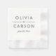 Modern and chic black and white wedding napkins feature an elegant and minimal black typographic monogram design that can be personalised with the bride and groom names and wedding date.