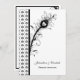 An elegant black and white damask wedding invitation embellished with a filigree peacock feather with unique heart shaped eye. Personalise this customisable wedding invitation by adding the names of the bride and groom.