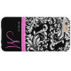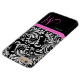 Elegant black and white Damask with Pink monogram Case-Mate iPhone Case