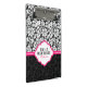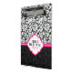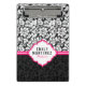 Elegant black and white floral damask pattern with pink stripe. Customisable mini clipboard template