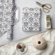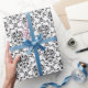 Elegant wrapping paper printed with a black damask pattern on a white background
