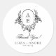 Elegant Vintage Leaf Monogram. Wedding Classic Round Sticker. Monogrammed initials framed by elegant hand illustrated vintage crest in black and white, simple but sophisticated style. Perfect choice for modern, classic, simple formal weddings. Kindly check out the matching pieces in the collection.
