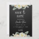 Celebrate your love in style with this elegant black and white floral Save the Date wedding invitation. Featuring a sleek black background adorned with soft white and cream roses, lush greenery, and modern typography, this design radiates sophistication and timeless romance.