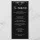 Each course is beautifully presented in an exquisite script that dances across the card, inviting guests to indulge in a culinary journey befitting the unique spirit of your gothic wedding. From the marinated jumbo shrimp appetizer to the sumptuous chocolate wedding cake finale, every dish is an ode to your exquisite taste.