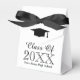 Elegant black and white graduation party Favour Boxes. Perfect for graduate students celebrating their grad year. Add your own high school name and year. Stylish typography template with academic tassel cap logo. Customisable background colour and bow colour. Bulk gift idea for him or her. Fill with sweets, candy and other treats.