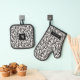 This elegant, stylish oven mitt and pot holder set features a pretty leaves pattern in black over a custom colour background (shown in white). Text templates are included for easy personalisation. Makes a great gift for the chef or baker in your life!
