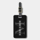 Men's monogram luggage tag featuring name in white color, first letter of the second name in grey on a deep black background. Personalize with contact details in trendy block capital lettering.