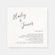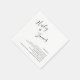 Simple black and white wedding napkins with your names in an elegant handwritten script at the top left and a list of fun facts about you in right alignment at the bottom right. The chic hand lettering adds a romantic touch to this minimalist design.