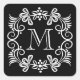 An elegant monogram sticker . The stylish monogrammed seal has a white floral swirls wreath pattern around the custom monogram initial to give your stickers a unique and chic look.