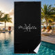 Elegant black and white monogrammed beach towel