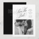This elegant one-photo wedding save the date features a beautiful "save the date" script type treatment, simple custom text and a large horizontal photo. This beautiful save the date design is a great way to share an engagement photo and tell family and friends wedding details. The back features an elegant matching black with soft dots along with a customizable message and a qr code for your wedding website. This original card by Lea Delaveris Design is available in more styles and colors in the collection and also as a digital save the date download.