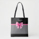 Elegant Black And White Pattern Pink Bow Tote Bag
