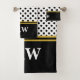 Elegant Black and White Polka Dot Pattern Monogram Bath Towel Set