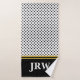 This monogrammed bath towel set is black and white and has a classic polka dot pattern. Personalise the set with the recipient's monogram/initials.