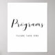 Elegant black and white Programs wedding sign