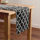 Elegant black and white quatrefoil pattern Short Table Runner. Custom background colour. Great for glamourous wedding party, classy bridal shower, Birthdays, chic reception, BBQ and more. Trendy decorations for venue or dinner party. Moroccan trellis print.