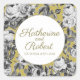 Elegant Black And White Roses on Gold Wedding Square Sticker