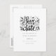 This pretty script black and white save the date announcement postcard features laurel leaves and hearts. Add your special announcement details in a classic text. The reverse has additional save the date details, including your wedding website, with your return address and space for your recipient's address.