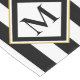 This table runner has a black and white striped design. You can also change the black letter to reflect the correct monogram. The initial has a black white and gold border.