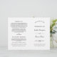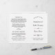 Refined black calligraphy and classic typography create a beautifully understated ceremony program with timeless appeal. Your names and wedding details are presented in an elegant layout on a clean white background, balancing script and serif fonts for a polished look. Inside pages are fully customizable for your bridal party, ceremony order, and a personal thank you message on the back cover. Programs are printed on text-weight paper and arrive flat, requiring a simple center fold.