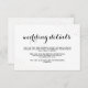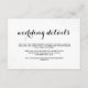 Elegant glam black text and white background wedding guest details card with delicate faux metallic dots on the front and back.
