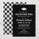 Celebrate your graduate with this black graduation party invitation featuring a bold “Backyard BBQ” headline, graduation cap icon, and clean rustic typography. Perfect for a casual cookout, open house, or summer backyard celebration. Backside features a coordinating black and white gingham pattern for a classic picnic vibe. Personalise with your graduate’s name and party details.