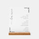 This acrylic sign features a minimalist and elegant design, perfect for displaying your bar menu. The layout is clean and organized, with sections labeled "Beer," "Wine," and "Spirits" in bold, uppercase letters, complemented by a stylish cursive script reading "bar menu." The color palette consists of black text on a white background, creating a sophisticated and modern look. Decorative corner accents add a subtle touch of flair, enhancing the overall aesthetic while maintaining simplicity. Ideal for bars or home entertainment spaces, this sign conveys a professional yet inviting atmosphere.
