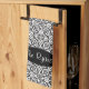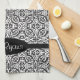 Elegant Black Baroque Damask Monogram Tea Towel