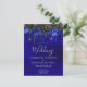 Elegant Black Blue Glitter Drips Police Wedding Announcement Postcard