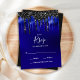 Elegant Black Blue Glitter Drips Wedding RSVP Card