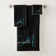 Elegant Black Blue Monogram Script Name Bath Towel Set