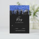 Elegant Black Blue Silver Glitter Drips Wedding RSVP Card
