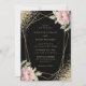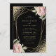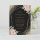 Elegant Black Blush Pink Peony Geo Gold Wedding Invitation