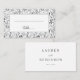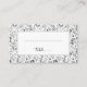 This elegant place card features a symmetrical layout with intricate botanical illustrations in a monochromatic black and white colour palette. The design showcases detailed linework, reminiscent of vintage botanical prints, creating an organic and serene atmosphere. A central blank space is bordered by dense floral patterns, allowing for customisation while maintaining a sophisticated aesthetic. The cursive script font adds a touch of refinement, making it perfect for formal events or gatherings that celebrate nature-inspired elegance.