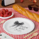 Reveal elegance with our Coquette styled 'She's tying the knot' themed bridal shower paper plates, adorned with a captivating black watercolor bow and elegant calligraphy script. These napkins add a distinctive charm to your bridal shower table setting.