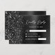 Elegant Black Brushed Metal Glitter Script Wedding RSVP Card