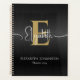 Elegant Black Brushed Metal Gold Monogram Diary Planner