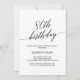 This elegant black calligraphy 80th birthday invitation is perfect for a simple birthday party. The neutral design features a minimalist card decorated with romantic and whimsical typography.