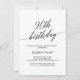 This elegant black calligraphy 90th birthday invitation is perfect for a simple birthday party. The neutral design features a minimalist card decorated with romantic and whimsical typography.