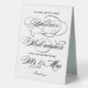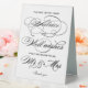 This table tent sign is the perfect size for our tables and easy to read. I also like the material it is made with and no worries about it falling or sliding. Just perfect! Everything about this card is perfect. I like that it says what we want on the front and on the back we were able to personalize a message for our guests.