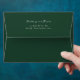 This wedding envelope features a sophisticated and minimalist design with a solid dark green background. The elegant script font, in crisp white, provides a striking contrast, making the customizable names and address stand out beautifully. Perfect for formal occasions, this design exudes a timeless charm with its clean lines and ample negative space, ensuring a refined and polished look that complements any wedding theme.