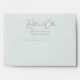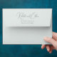 This wedding envelope features a minimalist and elegant design with a focus on typography. The names are displayed in an elaborate cursive script, while the address is presented in a simple serif font, creating a balance between sophistication and clarity. The monochromatic colour palette enhances its formal and refined aesthetic, making it perfect for weddings or significant announcements. Its clean layout and absence of decorative elements emphasise simplicity and timelessness, ideal for those who appreciate understated elegance.