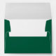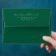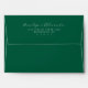 This wedding envelope features a sophisticated, minimalist design with a deep green background and elegant white typography. The layout is simple yet refined, showcasing the names in an ornate script font followed by address details in a clean sans-serif typeface. The monochromatic color palette enhances readability and exudes a timeless charm, perfect for formal occasions. Its modern aesthetic makes it ideal for couples seeking a classic and polished look for their special day.