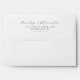 This elegant wedding envelope features a minimalist design with a clean, white background. The names are elegantly scripted in flowing cursive at the top, while the address is presented in a classic serif font below, creating a sophisticated and formal look. The monochromatic color palette enhances its timeless appeal, making it perfect for special occasions. Its simple yet refined style ensures clarity and readability, ideal for conveying your personal touch on this significant day.