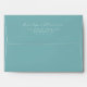 This wedding envelope features a minimalist and elegant design with a solid teal background. The layout includes a cursive, hand-lettered style for the names at the top, followed by clean serif fonts for the address details, creating a sophisticated and organised appearance. The monochromatic colour palette emphasises clarity and timelessness, making it perfect for formal announcements. With ample negative space and central alignment, this design conveys a sense of refinement and professionalism, ideal for couples seeking a modern yet understated look for their special day.