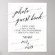 This elegant black calligraphy photo guest book sign is perfect for a simple wedding. The neutral design features a minimalist sign decorated with romantic and whimsical typography.